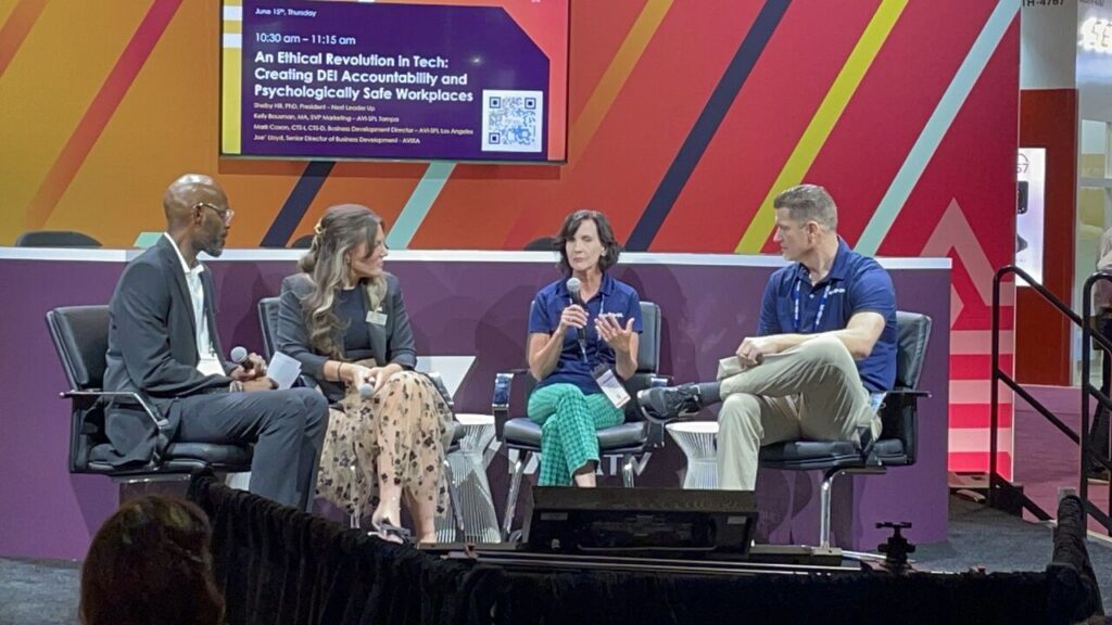 AVI-SPL’s Kelly Bousman and Mark Coxon participated in the DEI accountability and psychologically safe workplaces discussion. The discussion highlighted ways organizations can foster a safe, rich, and diverse culture in their workforce by implementing new team and group communication strategies throughout a business.